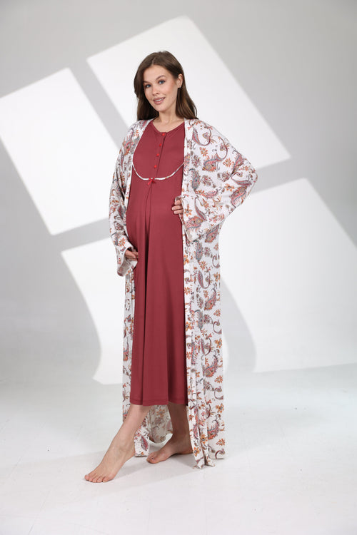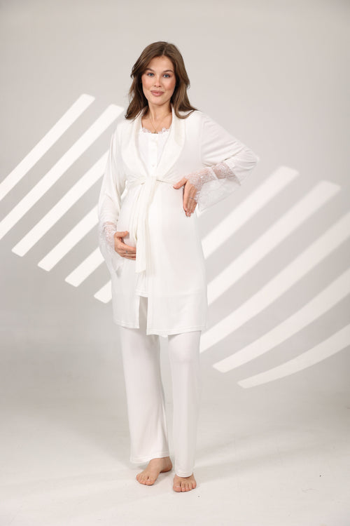 Narçiçeği Biyeli Sabahlıklı Lohusa Pijama Takımı-0810 -